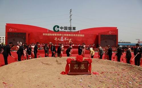 4月26日,華環(huán)國(guó)際煙草有限公司易地技術(shù)改造項(xiàng)目開(kāi)工奠基儀式在安徽省滁州市鳳陽(yáng)縣隆重舉行。國(guó)家煙草專(zhuān)賣(mài)局發(fā)展計(jì)劃司規(guī)劃處處長(zhǎng)王慶,中國(guó)煙葉公司打葉復(fù)烤企業(yè)管理部處長(zhǎng)鄭安,上海市煙草專(zhuān)賣(mài)局、上海煙草集團(tuán)有限責(zé)任公司黨組書(shū)記、局長(zhǎng)、董事長(zhǎng)、總經(jīng)理施超,安徽省煙草專(zhuān)賣(mài)局(公司)局長(zhǎng)、總經(jīng)理問(wèn)武,安徽中煙工業(yè)有限責(zé)任公司總經(jīng)理朱建華,中國(guó)煙草總公司合肥設(shè)計(jì)院院長(zhǎng)朱小平等及安徽省滁州市、鳳陽(yáng)縣有關(guān)領(lǐng)導(dǎo)出席儀式。儀式上,華環(huán)公司總經(jīng)理王輝、鳳陽(yáng)縣縣長(zhǎng)米德成、上海煙草集團(tuán)公司副總經(jīng)理郜強(qiáng)、安徽中煙工業(yè)公司常務(wù)副總經(jīng)理盧安寧、國(guó)家局計(jì)劃司規(guī)劃處處長(zhǎng)王慶、安徽省局(公司)副總經(jīng)理卓?jī)華,滁州市市委常委、副市長(zhǎng)王圖強(qiáng)分別致辭。滁州市市委書(shū)記江山宣布項(xiàng)目奠基開(kāi)始。在喜慶的鑼鼓和鞭炮聲中,與會(huì)主要領(lǐng)導(dǎo)共同給項(xiàng)目奠基培土。 郜強(qiáng)副總經(jīng)理代表上海煙草集團(tuán)有限責(zé)任公司致辭。他指出,華環(huán)公司作為“中華”品牌煙葉原料的核心加工單位,既是“中華”卷煙制造鏈上的重要組成部分,更是上海煙草與安徽煙草全方位合作的一個(gè)重要平臺(tái)。華環(huán)公司易地技改項(xiàng)目的奠基并開(kāi)工建設(shè),標(biāo)志著華環(huán)公司進(jìn)入了一個(gè)全新的發(fā)展時(shí)期。相信通過(guò)易地技術(shù)改造后的華環(huán)公司,一定能為上海煙草集團(tuán)特別是“中華”品牌的發(fā)展提供更優(yōu)質(zhì)的服務(wù),一定能實(shí)現(xiàn)“國(guó)內(nèi)領(lǐng)先復(fù)烤企業(yè)”的愿景,創(chuàng)造更加美好的未來(lái)。上海煙草集團(tuán)將一如既往地全力支持華環(huán)公司的發(fā)展和易地技改項(xiàng)目的建設(shè)。 安徽省局(公司)副總經(jīng)理董建江及有關(guān)處室、地市局(公司)主要負(fù)責(zé)人;上海市局、集團(tuán)公司,安徽中煙工業(yè)公司有關(guān)處室領(lǐng)導(dǎo);華環(huán)公司員工共800余人出席奠基儀式。 華環(huán)公司易地技術(shù)改造項(xiàng)目定位于配套“中華專(zhuān)線”的打葉復(fù)烤生產(chǎn)線。該項(xiàng)目位于安徽省滁州市鳳陽(yáng)縣門(mén)臺(tái)工業(yè)園區(qū),占地620畝,規(guī)劃總建筑面積13.4萬(wàn)平方米,擬新建一條12000Kg/H的打葉復(fù)烤生產(chǎn)線,并配套相關(guān)的物流、動(dòng)力、公用工程及輔助生產(chǎn)系統(tǒng)。該項(xiàng)目將應(yīng)用打葉復(fù)烤新工藝、新技術(shù)、新設(shè)備,打造工藝先進(jìn)、設(shè)施齊全、質(zhì)量?jī)?yōu)良、管理高效的“中華”原料挑選加工中心,預(yù)計(jì)2013年建成投產(chǎn)。 |